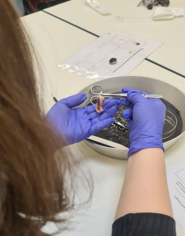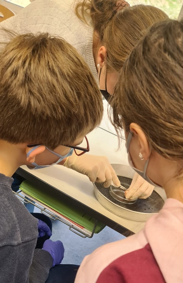 In der Unterrichtseinheit „Sinne“ hat sich die Klasse 7.2 heute mit dem Auge beschäftigt und dieses im Unterricht seziert. Die Schülerinnen und Schüler haben so die einzelnen Bestandteile eines Schweineauges selbstständig entdecken können. Nach anfänglicher Zurückhaltung hat die Klasse sehr neugierig und mit viel Fingerspitzengefühl biologische Kenntnisse erlangt. Zusammen mit Herrn Grethe haben wir am Ende sehr eindrucksvolle Lernergebnisse erzielen können!