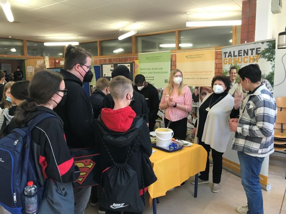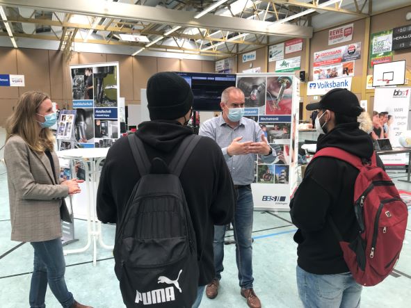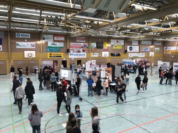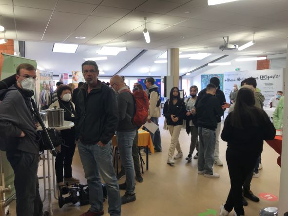 Am 29.4.22 fand an der IGS in Bovenden der fünfte BerufeTag statt, bei dem sich insgesamt 38 Aussteller beteiligten. Sie zeigten Ihre Unternehmen und die entsprechenden Berufe, Ausbildungen und Studiengänge. Neben den Schülerinnen und Schülern aus Bovenden nahmen auch die OBS aus Dransfeld, die Neue IGS aus Göttingen und die Außenstelle Nörten Hardenberg der KGS Moringen teil. Ein gelebtes Beispiel einer Zusammenarbeit in der Region, sogar über die Grenzen des Landkreises Göttingen hinweg. Alle Beteiligten freuten sich, dass nach der langen Coronapause endlich ein solches Format wieder durchgeführt werden konnte. Eine Veranstaltung wie diese ist auf eine Vielzahl an Berufen und vor allem auch an Praktikern, die den Schülerinnen und Schülern die Fragen beantworten können, angewiesen. Wir freuen uns, dass wir mit dem BerufeTag einen wichtigen Baustein bei der Berufsorientierung an der IGS Bovenden wieder umsetzen konnten.